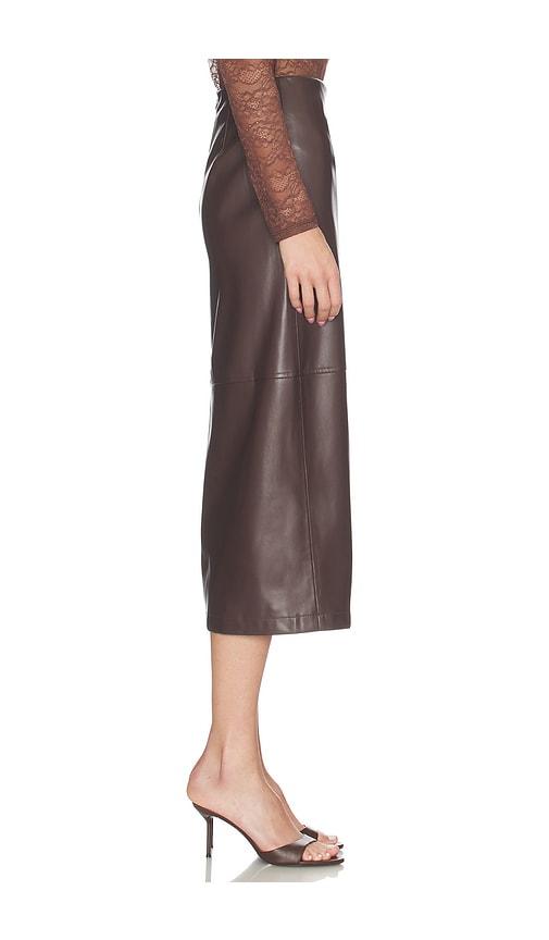 CAMI NYC LORENA FAUX LEATHER SKIRT IN BROWN.
