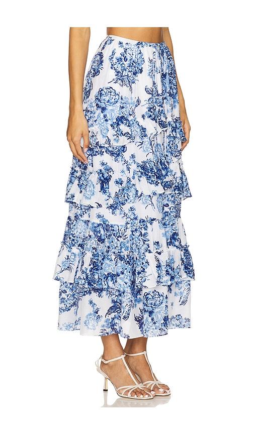 CINQ A SEPT COSTAL BOUQUET KANDRA SKIRT IN BLUE.