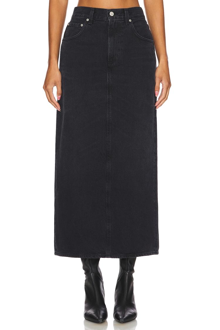 Grounded in timeless denim, this Verona Column Skirt from Citizens of Humanity brings a refined, career-ready edge to your wardrobe. Crafted in 100% cotton denim with a midweight hand, the long midi silhouette falls clean and straight, skimming the calves with a flawless column line. A classic five-pocket design sits at the hip, while a discreet zip fly and button closure secure the fit. A subtle back slit adds ease of movement, making it equally at home with ankle boots and a tucked-in sweater for casual days, or a silky blouse for office-leaning evenings. Effortless, versatile, and endlessly chic.