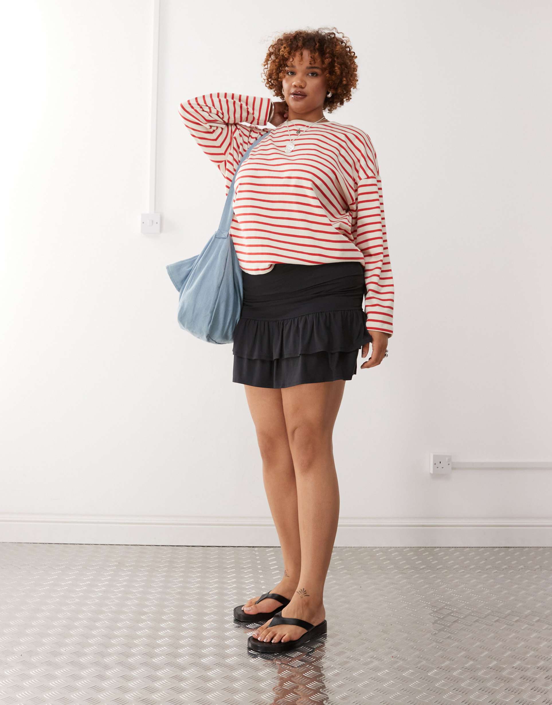 COLLUSION PLUS MINI SKIRT WITH RUFFLE DETAIL IN BLACK