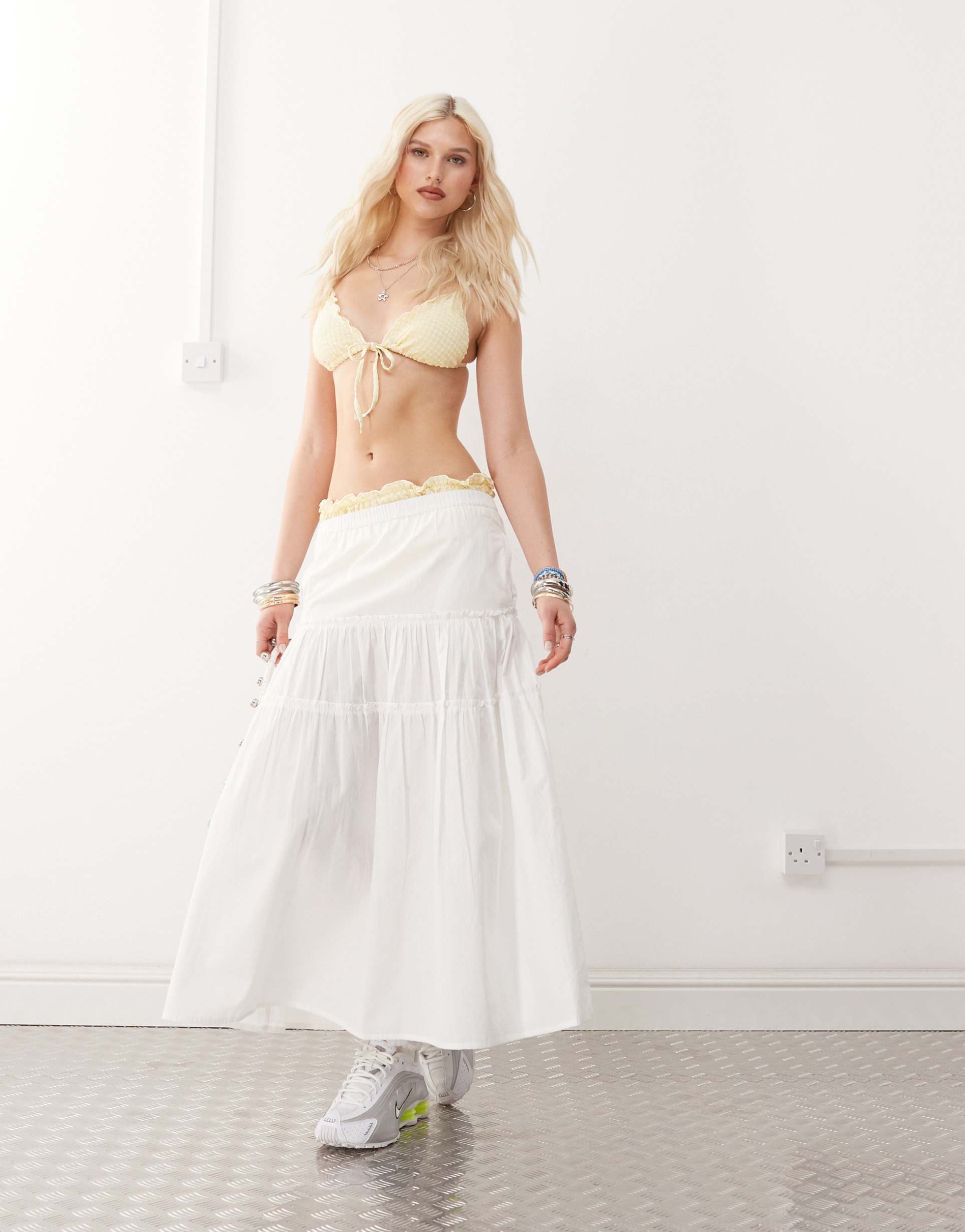 COLLUSION POPLIN DROP WAIST FRILL DETAIL MAXI SKIRT IN WHITE