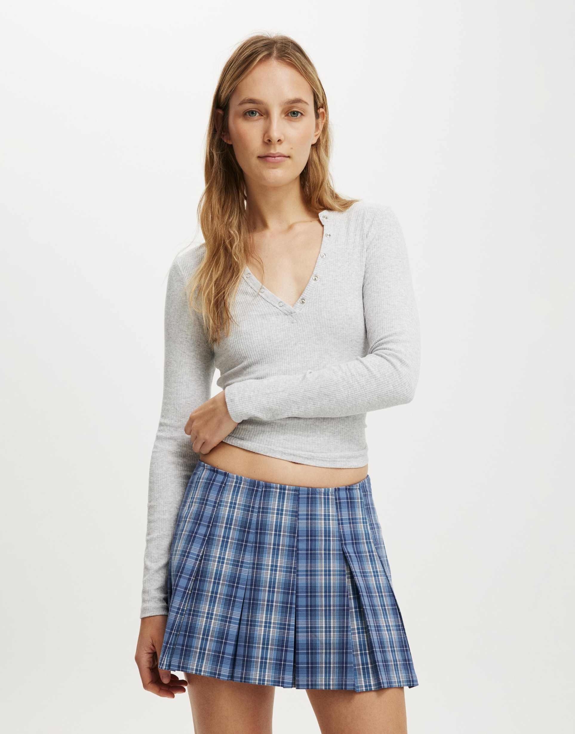 COTTON ON MAE PLEATED MINI SKIRT IN BLUE