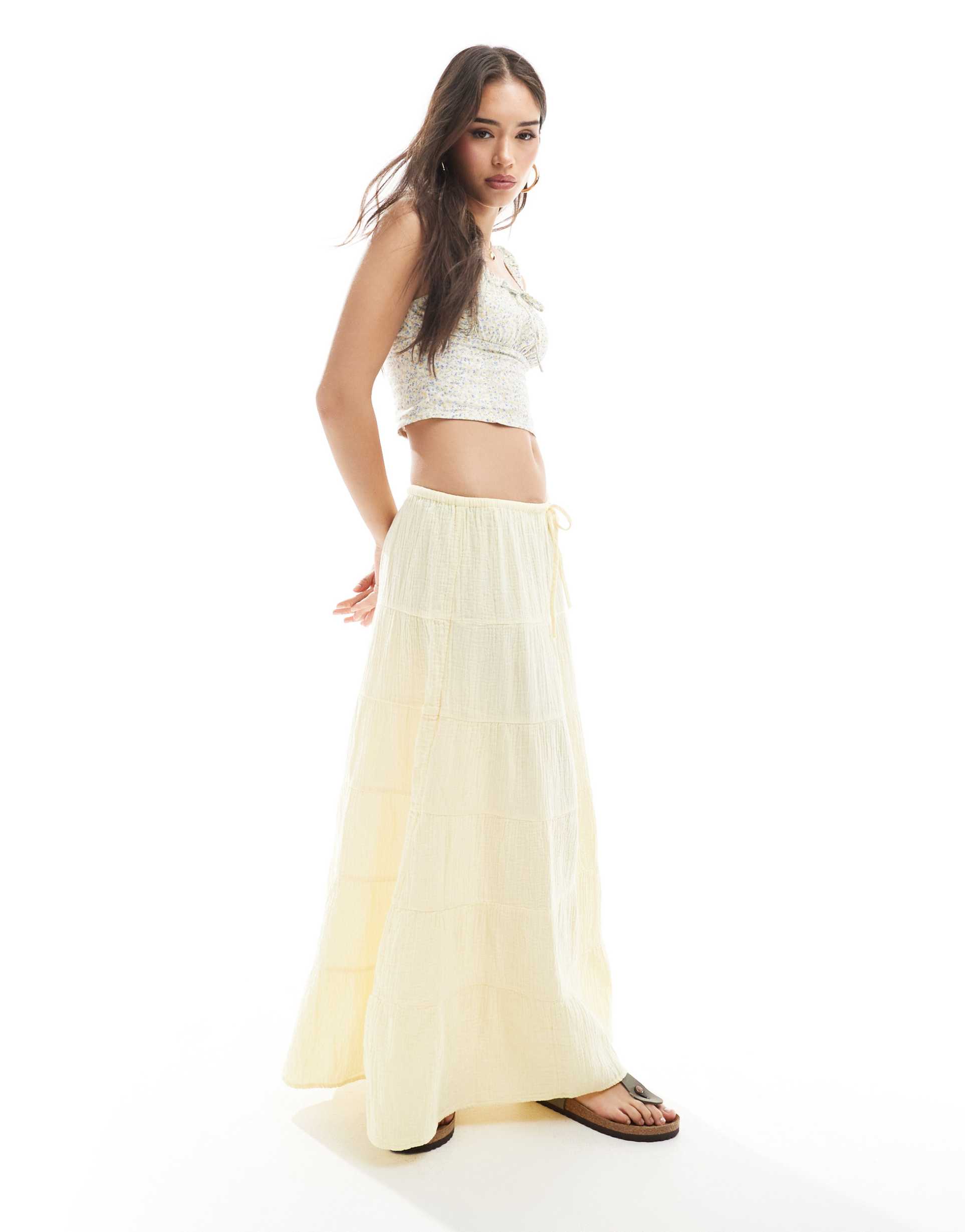COTTON ON TIERED MAXI SKIRT IN LEMON ICING