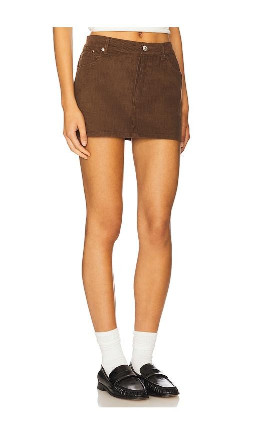 EB DENIM CHERRY MINI SKIRT IN BROWN.