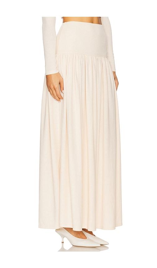 ELODIE THE LABEL CLEO MAXI KNIT SKIRT IN IVORY.