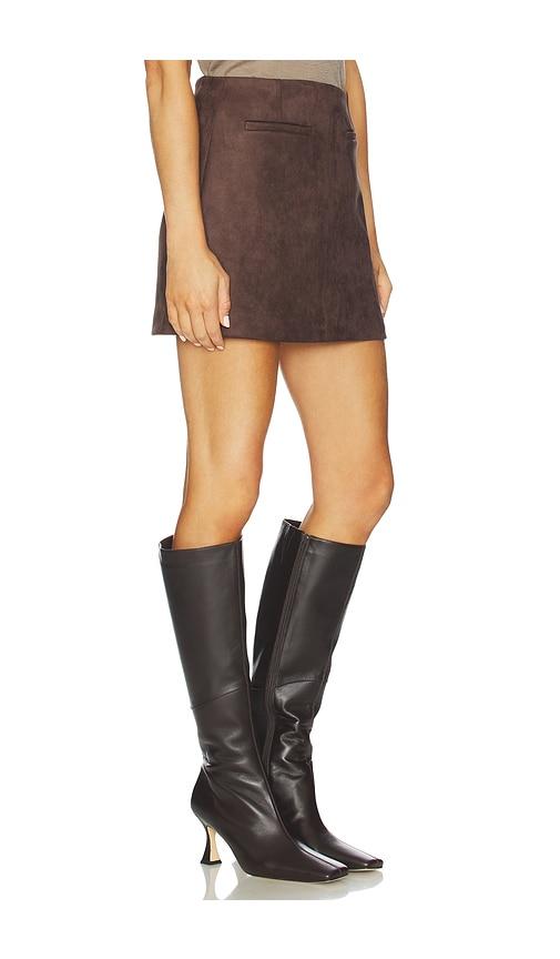 ELODIE THE LABEL ELODIE MINA FAUX SUEDE MINI SKIRT IN BROWN.