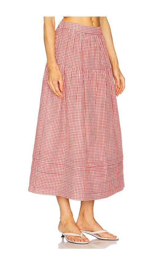 ELODIE THE LABEL JAMIE SKIRT IN RED.