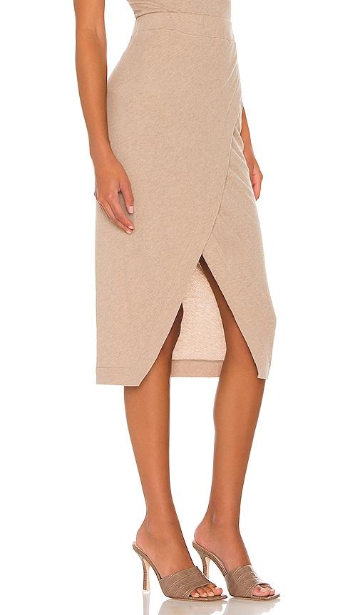 ENZA COSTA CASHMERE MIDI SKIRT IN TAN.