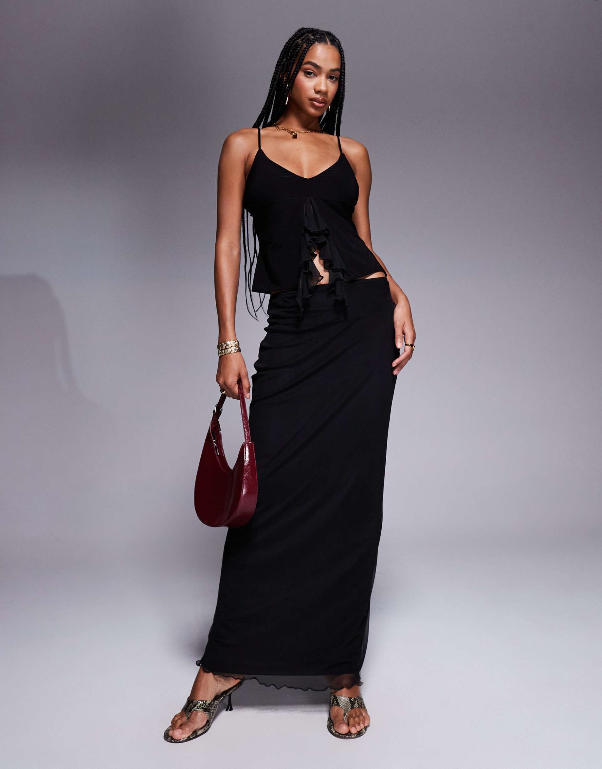 Fashionkilla double sculpted slinky column mesh overlay maxi skirt in black - part of a set