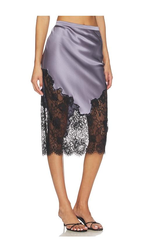 FLEUR DU MAL JULIET LACE AND SILK SKIRT IN LAVENDER.