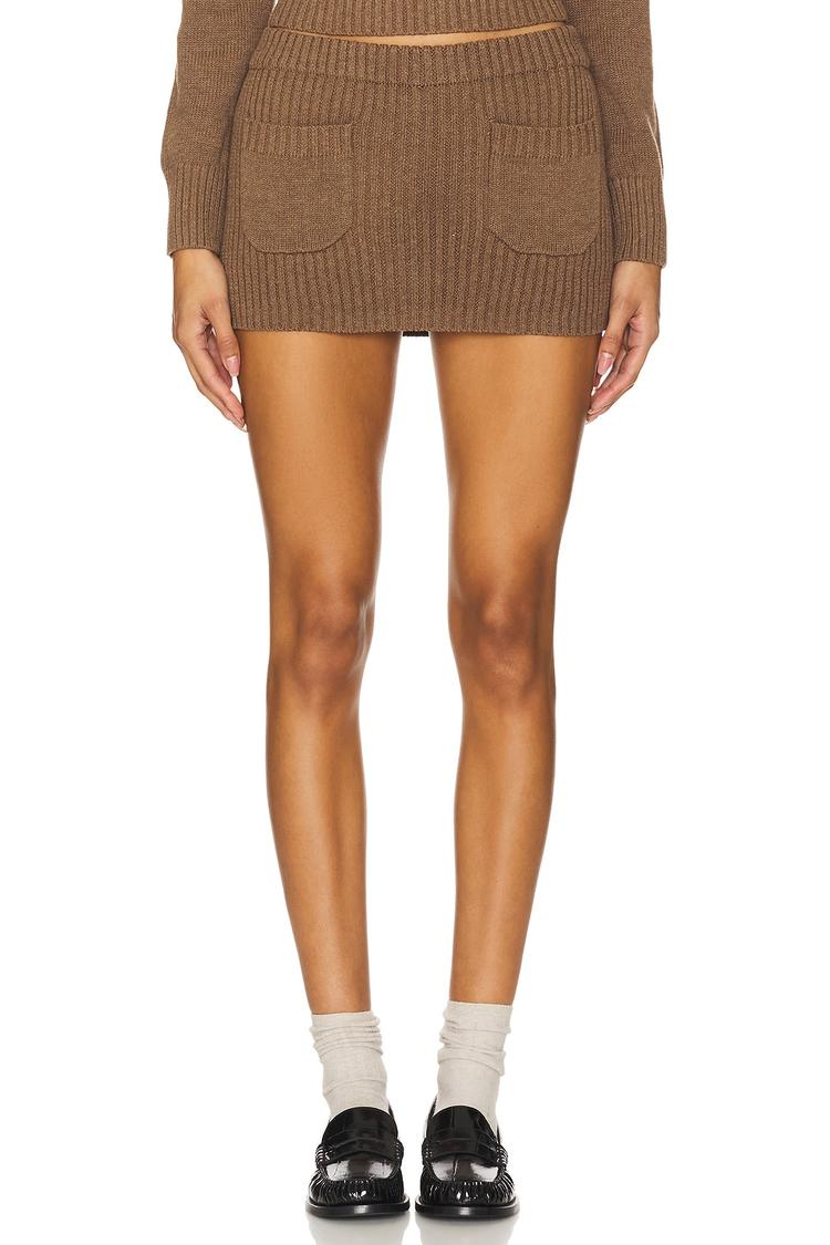 Effortless ease meets cozy knit in this Ashton Cotton Knit Skort from Frankies Bikinis. Wrapped in a rich caramel-brown knit, the pull-on silhouette skims the hips with a slim fit and flirty mini length, pairing a practical front with two discreet pockets for everyday errands. Made from a soft cotton-poly blend, this skort offers breathable comfort with a touch of stretch for all-day movement. Style it with a cropped sweater or a tucked-in blouse and loafers for casual-chic looks from brunch to date night. A versatile staple that blends comfort and polish.