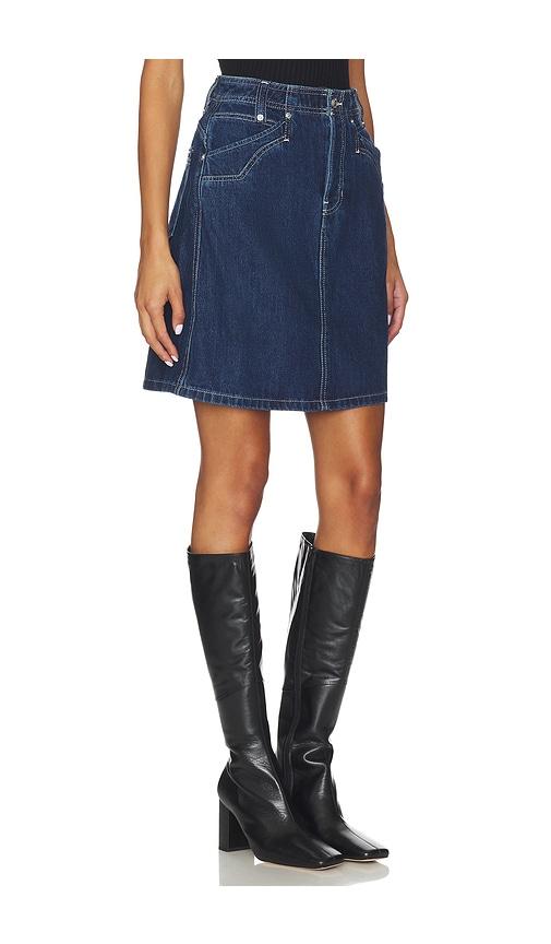 FREE PEOPLE X WE THE FREE SUZY DENIM MIDI SKIRT IN DEEP OCEAN IN BLUE.