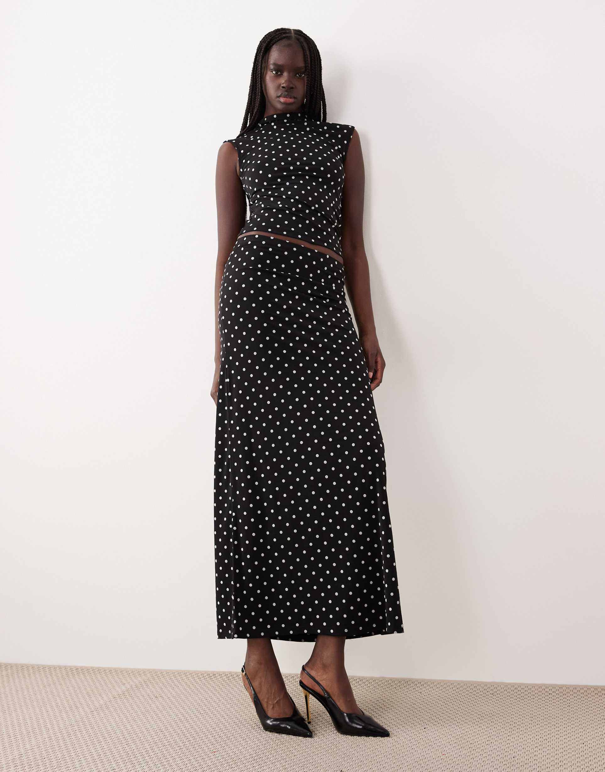 GINA TRICOT MAXI SKIRT IN BLACK AND WHITE POLKA DOT - PART OF A SET