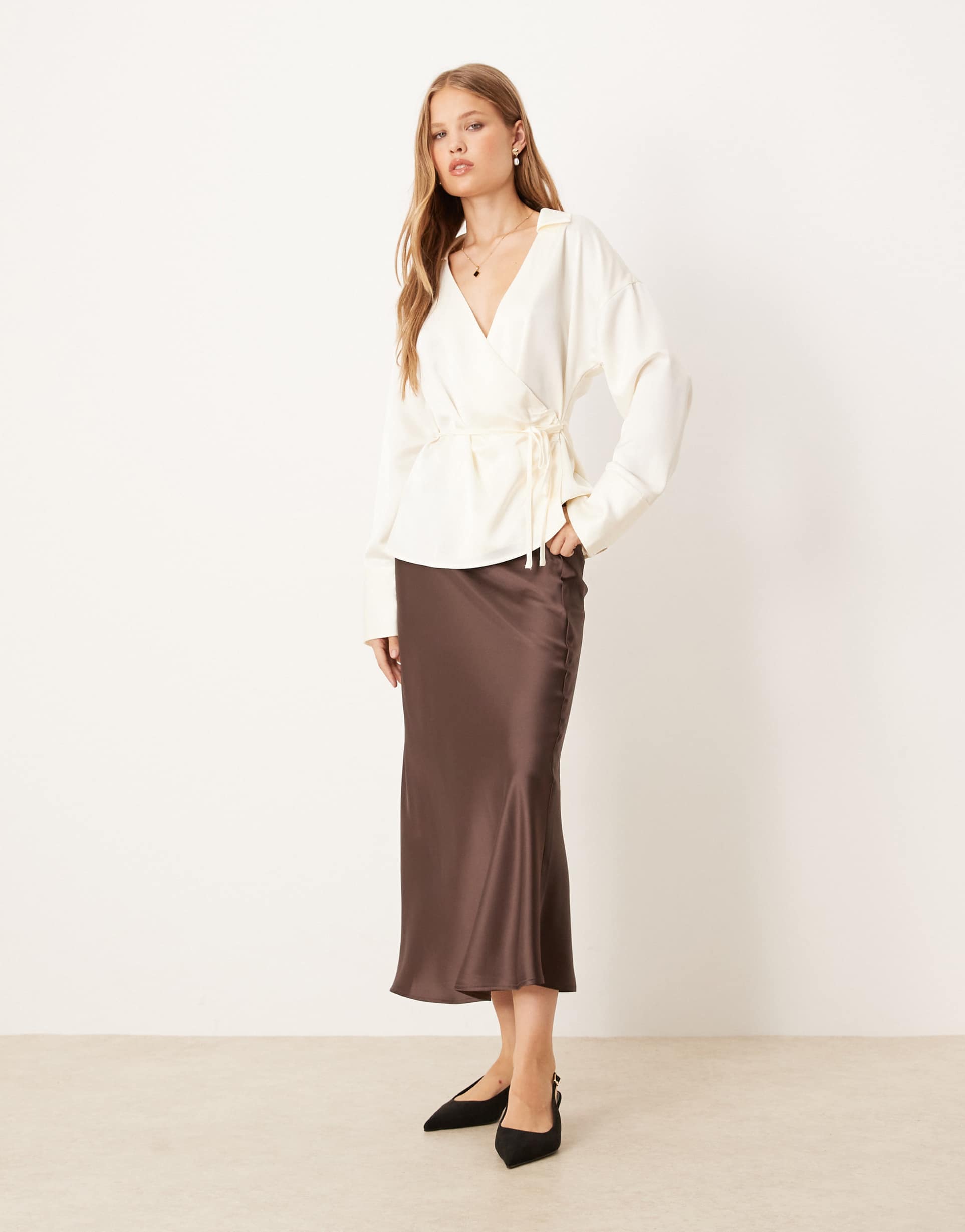 GINA TRICOT MIDI SATIN SKIRT IN BROWN