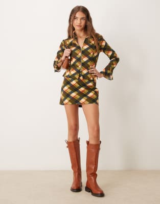 Glamorous delivers a bold, retro-inspired vibe with this low-rise tartan mini skirt. The red and khaki plaid sits on a slim, pencil silhouette for a figure-skimming look, crafted in a cotton blend with a touch of elastane for subtle stretch. A discreet side zip and a flat-front waistband keep the line clean, while the ultra-short hem adds flirtatious edge. Part of a co-ord set (shirt sold separately), it scales from casual daytime outings to weekend evenings when paired with boots or a cropped knit. Effortless, versatile plaid that elevates everyday outfits with vintage charm.