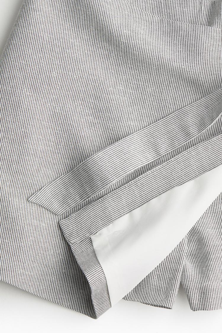 Experience effortless style and comfort with this light gray linen-blend skort, designed for the modern minimalist. Featuring a flattering A-line silhouette with a mid-rise belted waistband, this above-knee length skort combines the airy breathability of linen with a soft, lightweight texture perfect for warmer days. The clean hemline and subtle tie-up detail add a refined touch to a versatile casual-chic piece ideal for brunch outings, travel adventures, or everyday wear. Elevate your warm-weather wardrobe with this easy-to-style skort that balances function and fashion seamlessly.