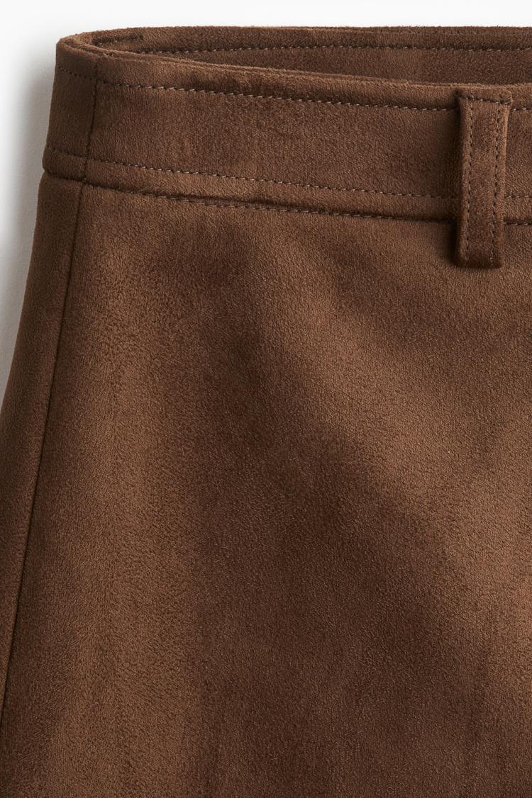 Bring timeless charm to your casual wardrobe with this classic brown suede mini skirt. Featuring a smooth, soft-touch fabric, it offers a flattering A-line silhouette that gently flares from a regular waist-rise with a flat-front waistband. The clean hemline and practical front pockets add to its minimalist appeal, perfect for pairing with cozy knits or fitted tops. Ideal for everyday wear in cooler seasons like autumn and spring, this skirt is a versatile staple that combines comfort with understated elegance, making it a go-to piece for brunches or relaxed outings.