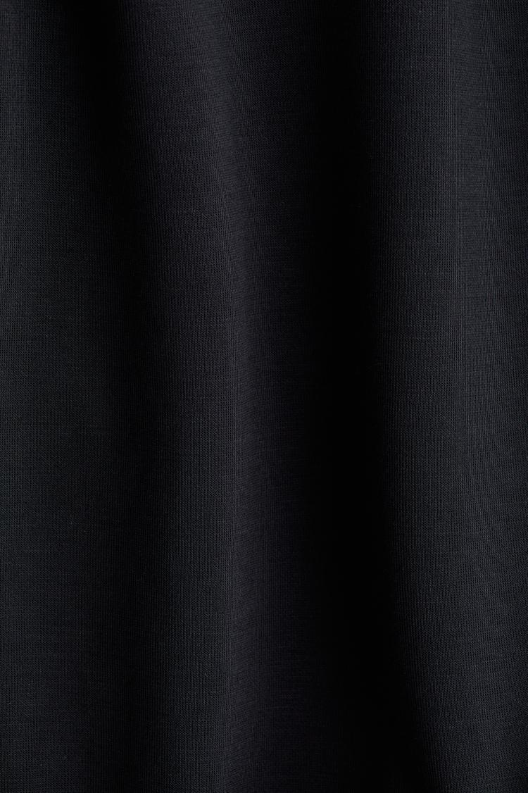 Effortlessly chic and versatile, this black pleated scuba skort combines the playful silhouette of a circle skirt with the comfort and structure of scuba fabric. Featuring a mid-rise flat-front waistband and a clean hemline, it offers a flattering regular fit that moves gracefully with you. The subtle all-over pleating adds texture and dimension without overwhelming the minimalist design. Perfect for casual outings or everyday wear in warmer seasons, this skort pairs seamlessly with striped tops or simple tees for an easy, modern aesthetic. Enjoy the stretchable fabric's shape retention that keeps you looking polished all day long.