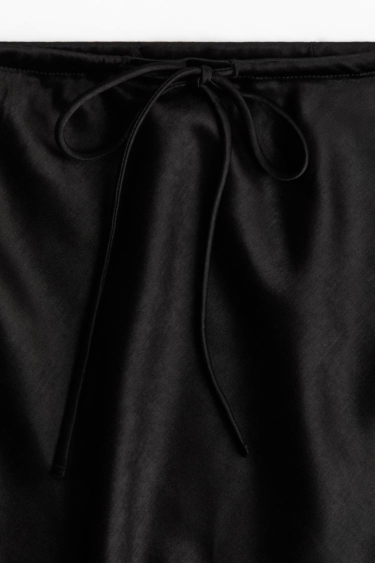 Embrace effortless polish with this satin A-line skirt that drapes to full length in a rich, jet-black sheen. The long silhouette flatters with a soft, fluid fall, while a discreet waistband pairs an elastic slip with a slender drawstring for a comfortable, adjustable fit. Unlined for a light, airy feel, the piece moves with you from desk to dinner and beyond. Style it with a silky blouse and pumps for a refined office look, or pair with a knit sweater and sneakers for weekend chic. A versatile staple that elevates everyday outfits with quiet luxury.