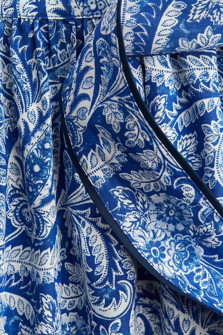 Bring breezy elegance to your wardrobe with this Tie-Detail Poplin Skirt. Crafted in lightweight, breathable poplin fabric, it features a flowing midi-length silhouette with a flattering regular waist rise and a belted waistband accented by a stylish tie closure. The skirt showcases an all-over intricate floral paisley print in matte dark blue and off-white hues, perfect for casual days, brunches, or vacation outings. Its clean hemline and relaxed fit ensure comfortable wear while maintaining a chic bohemian vibe. This versatile skirt pairs effortlessly with simple tops and sandals for an easy, timeless look.