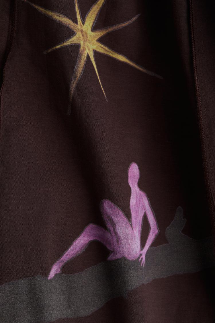 Embrace effortless elegance with this voluminous skirt, crafted in a soft, breathable cotton fabric perfect for spring through autumn wear. The rich matte dark brown base is adorned with subtle muted beige and lavender abstract prints that add a modern bohemian charm. Featuring a comfortable regular waist-rise and adjustable drawstring waistband, the skirt flows freely to full length, creating a relaxed yet stylish silhouette. Ideal for casual outings, travel, or everyday wear, this skirt combines comfort and artistic flair to elevate your warm-weather wardrobe with a versatile, chic statement piece.