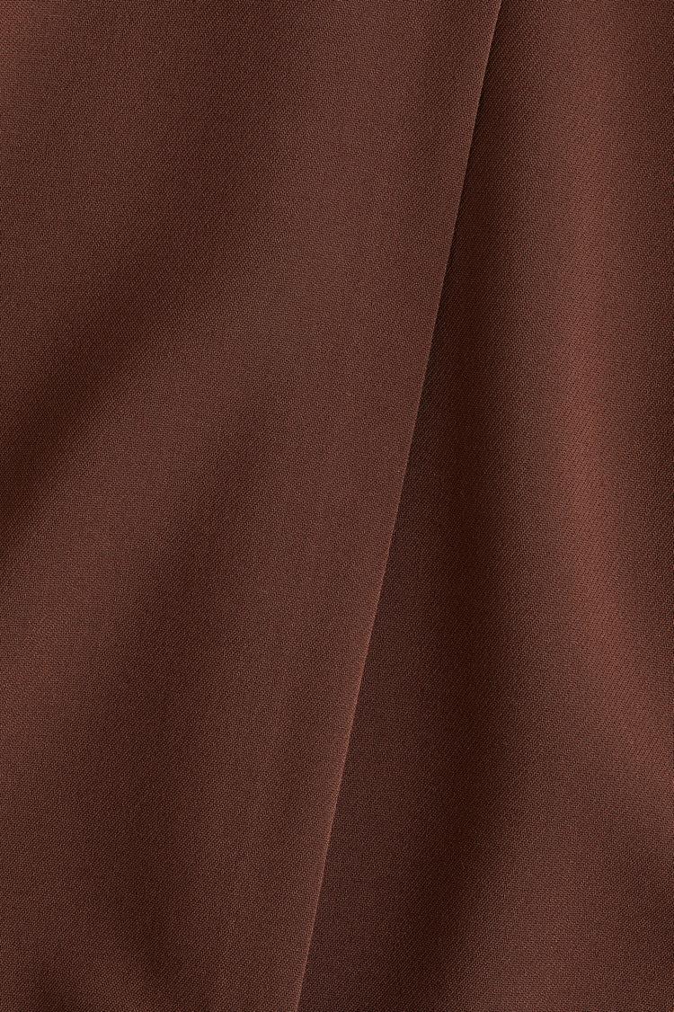 Embrace timeless elegance with this matte dark brown wrap skirt, crafted from a smooth woven fabric that offers a clean, structured silhouette. Featuring a mid-rise belted waistband and a modest midi length, this skirt includes a subtle front slit for ease of movement and a touch of modern flair. Perfect for both casual days and professional settings, it pairs effortlessly with a variety of tops and footwear. Its minimalist design and classic fit make it a versatile wardrobe staple, ideal for autumn and spring wear, delivering understated sophistication with every step.