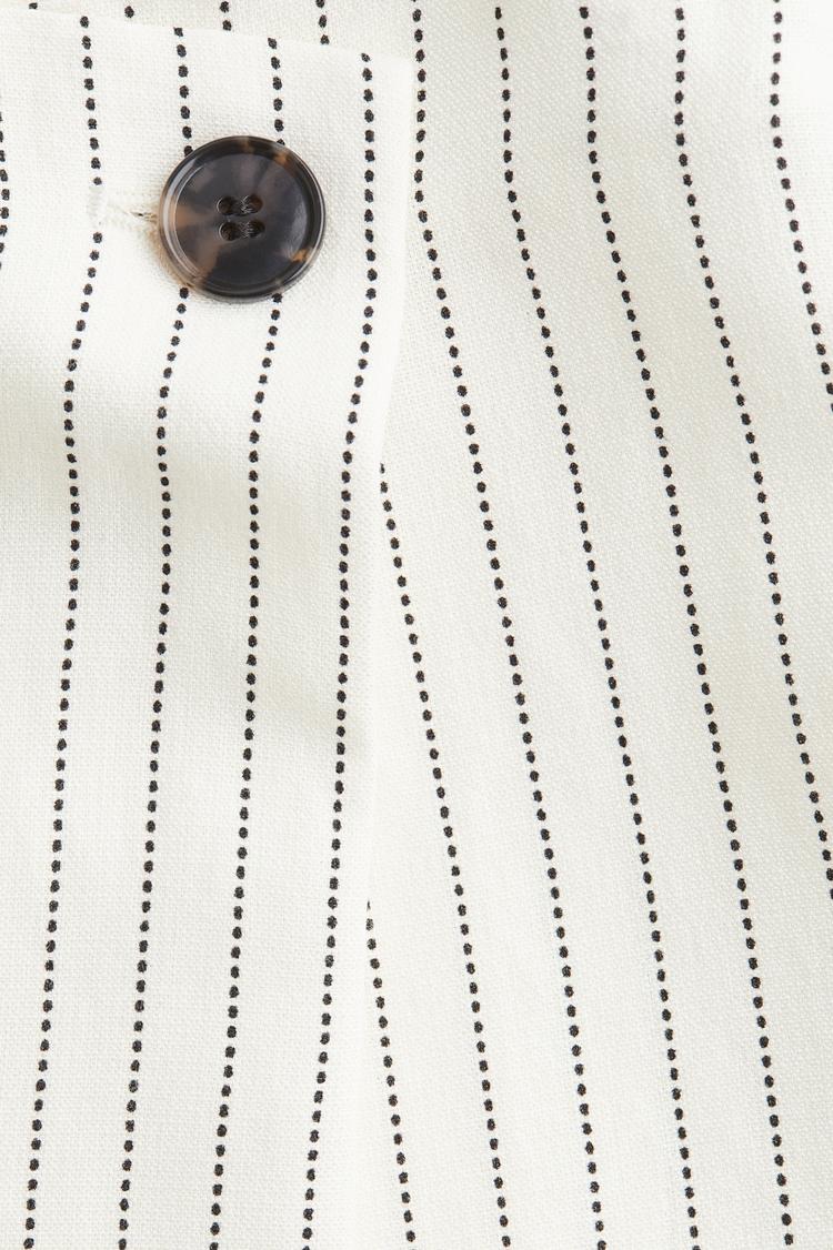 Embrace effortless summer style with this chic wrap skort from H&M. Crafted from breathable, lightweight cotton, it features a subtle striped pattern in classic off-white and black hues, perfect for warm weather. The mini length and flat-front waistband offer a flattering regular waist rise, while the button closure adds a neat finishing touch. Its clean hemline and modern wrap silhouette bring a minimalist, casual chic vibe ideal for daytime outings, brunches, or travel. Pair it with simple tops and sandals for an easy, stylish look that balances comfort with contemporary flair.