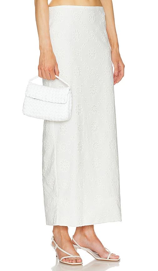 HELSA EYELET COLUMN MIDI SKIRT IN WHITE.
