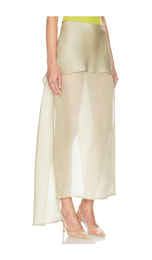 HELSA THE SILK GAZAR SKIRT WITH DRAPE IN TAUPE.