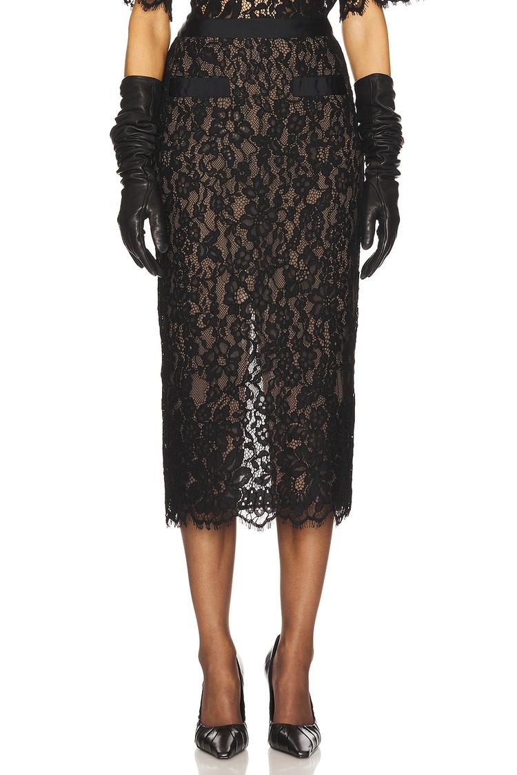 Step into timeless elegance with Helsa’s Lace Midi Skirt. A refined pencil silhouette in black lace rests over a soft lining for all‑day coverage, finished with a discreet back zipper for a flawless fit. The scalloped hem adds delicate movement, while practical front seam pockets enhance everyday wear. Fully lined and versatile, this midi skirt transitions from formal events to chic date nights with ease. Pair it with a satin blouse and sleek heels for a cocktail-worthy look, or with a cashmere knit for refined evening styling. A luxe staple that speaks to understated glamour.