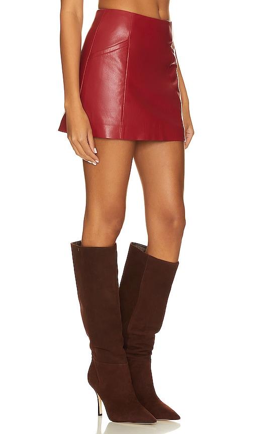HOUSE OF HARLOW 1960 X REVOLVE BORDEAUX FAUX LEATHER MINI SKIRT IN RED.
