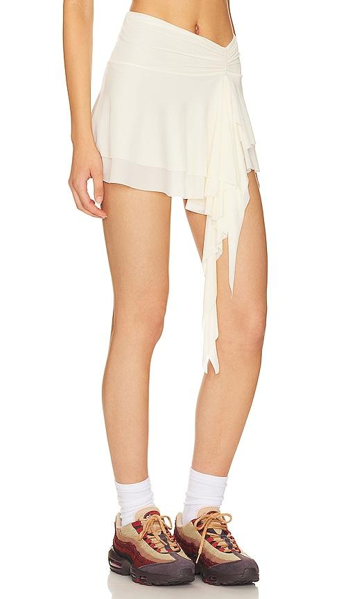 INDAH EDIE FRILL MINI SKIRT IN IVORY.