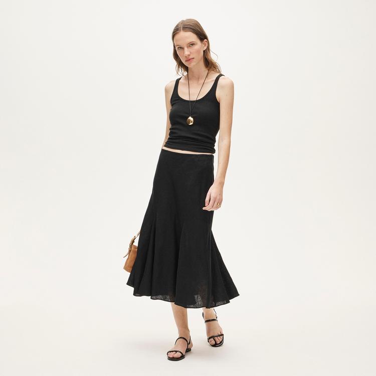 GWYNETH FLOUNCE-HEM SLIP SKIRT IN LINEN