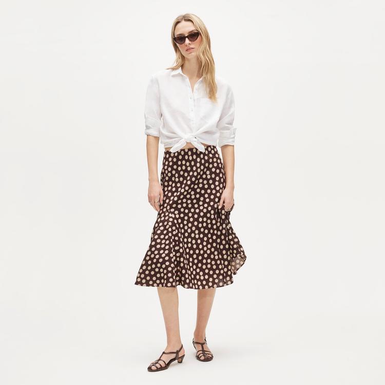 GWYNETH FLOUNCE-HEM SLIP SKIRT IN LINEN