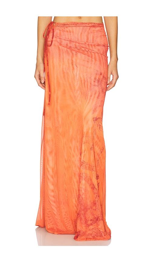 JADE CROPPER REVERSIBLE MAXI SKIRT IN RED.