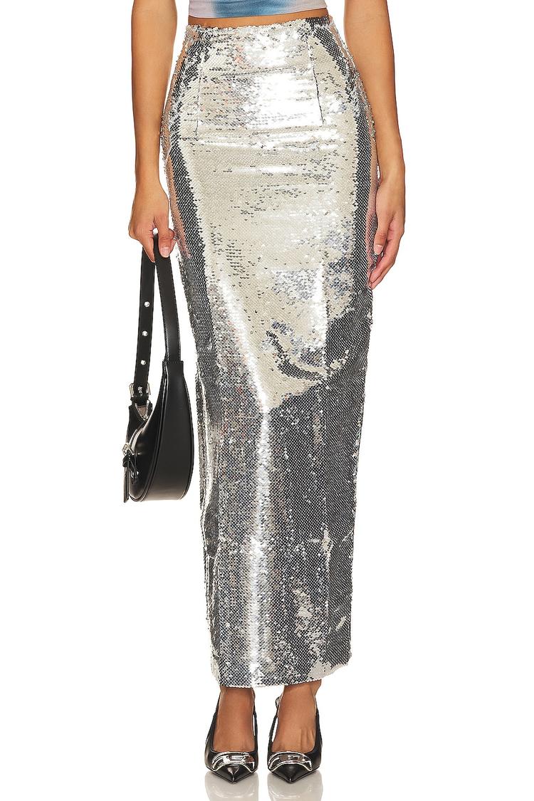 Make a stunning statement at your next event with this dazzling full-length metallic skirt. Crafted from a shimmering nylon and lurex blend, it features a fitted silhouette and a high waist that elegantly defines your figure. The sleek design is enhanced by a daring side slit, creating an alluring glimpse of your legs with every step you take. Perfect for a cocktail party or a night out on the town, this classy piece pairs beautifully with strappy heels and a chic top, making it an essential addition to your sophisticated wardrobe.