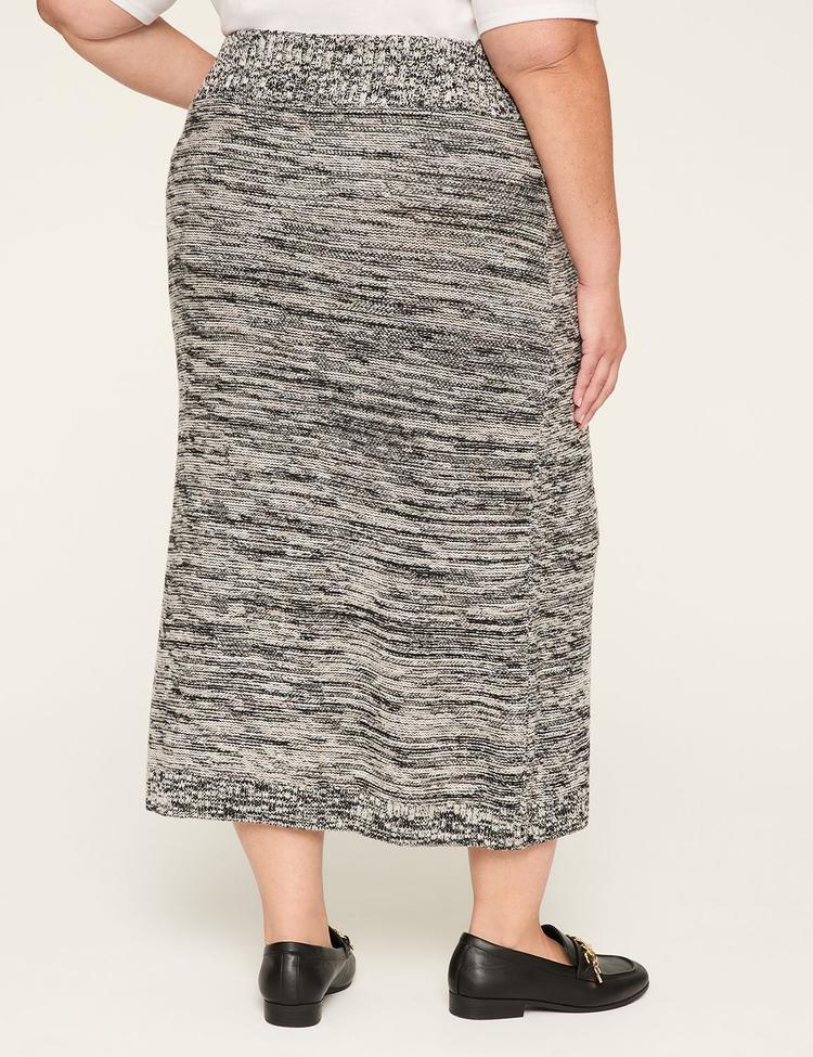 Cozy meets timeless polish in this Cable Knit Maxi Sweater Skirt from Lane Bryant. A soft cotton-and-acrylic knit in a black-and-white marl creates a textured, all-season vibe that drapes beautifully to a full-length silhouette. The ribbed elastic waistband promises a smooth, pull-on fit that moves with you, while the generous maxi hem offers comfy coverage and refined line. Wear it with a chunky sweater and tall boots for casual days, or dress it up with a fitted turtleneck and heeled ankle boots for evenings out. Effortless, versatile and flattering—the ultimate staple for curvy, modern wardrobes.