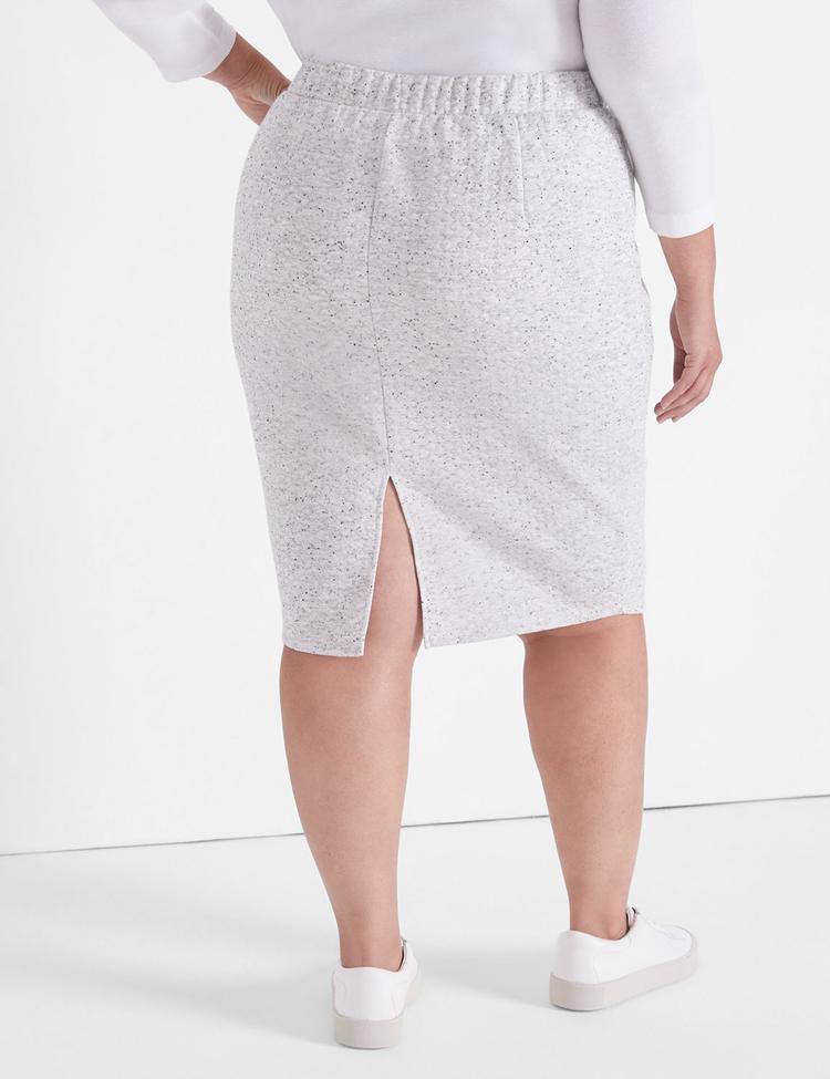 Experience cozy elegance with the LIVI Quilted Skirt in a soft light ivory hue, designed especially for plus sizes. This knee-length pencil skirt features a comfortable mid-rise elasticated waistband and a subtle back slit for ease of movement. Crafted from a plush quilted polyester fabric, it offers a soft-touch texture that elevates casual loungewear to chic comfort. Perfect for relaxed days at home or casual outings, it pairs effortlessly with the matching sweatshirt to complete a stylish and comfortable sweatsuit look. Embrace relaxed sophistication with this versatile, cozy essential.