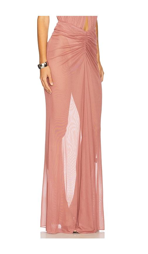LAPOINTE MESH RUCHED MAXI SKIRT IN PINK.