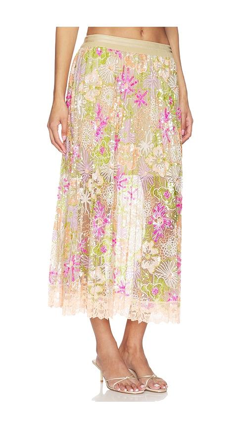 LE SUPERBE FLORI CULTURE PLEATED SKIRT IN NEUTRAL,PINK.