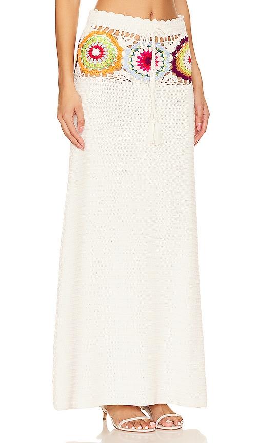LOVERS AND FRIENDS KESTREL CROCHET MAXI SKIRT IN CREAM.