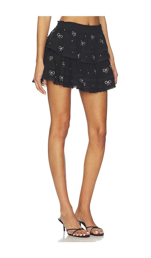 LOVESHACKFANCY RUFFLE MINI SKIRT IN BLACK.