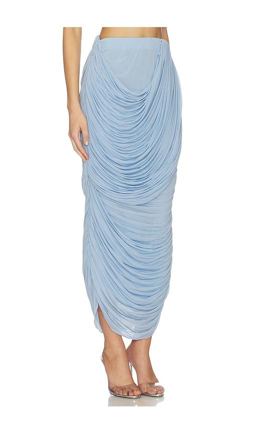 MAGDA BUTRYM DRAPED MIDI SKIRT IN BABY BLUE.