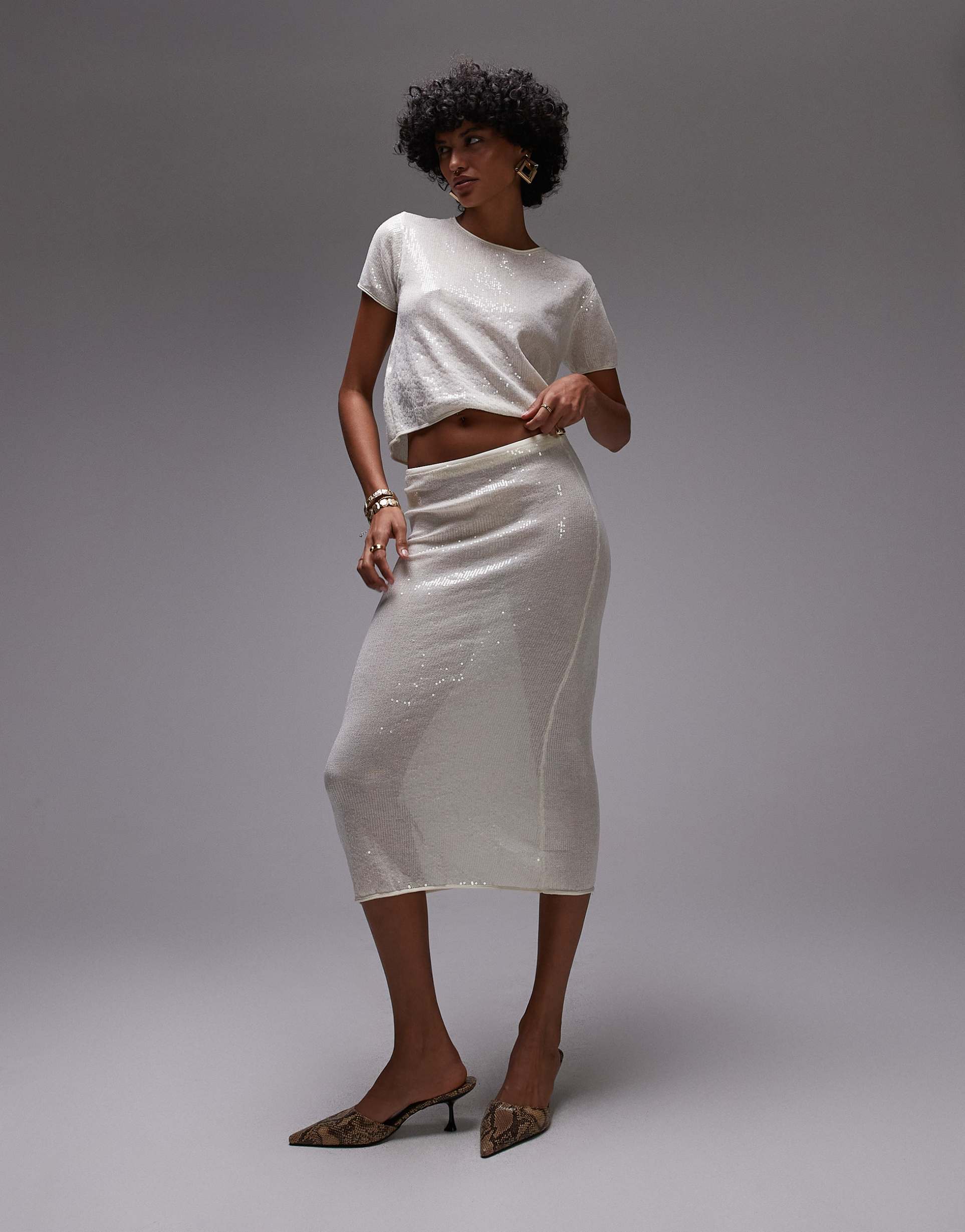 MANGO CAPSULE EMBELLISHED MIDI SKIRT IN OYSTER - PART OF A SET
