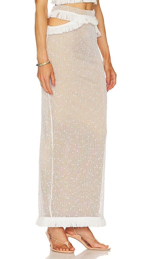 MICHAEL COSTELLO X REVOLVE NOOMI MAXI SKIRT IN WHITE.