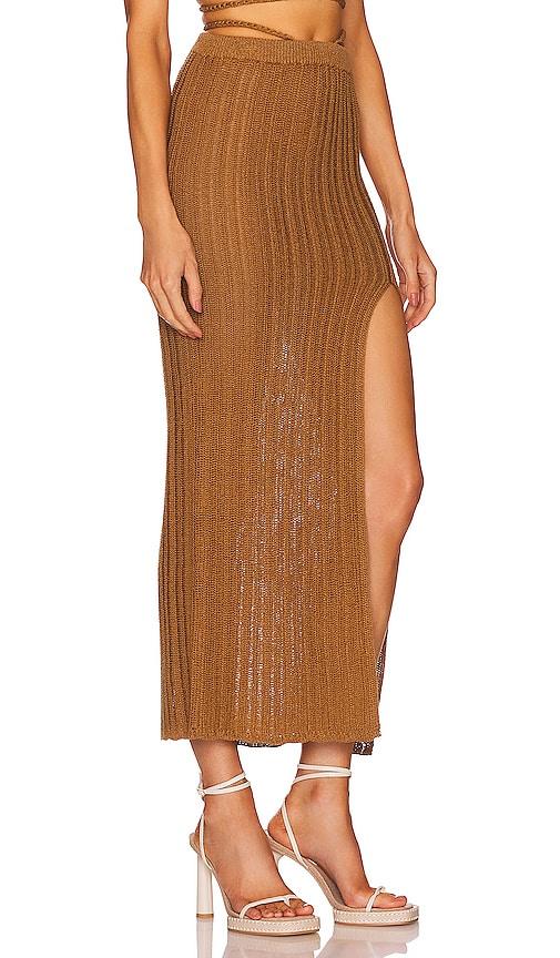 MICHAEL COSTELLO X REVOLVE SYLVAN MAXI SKIRT IN BROWN.