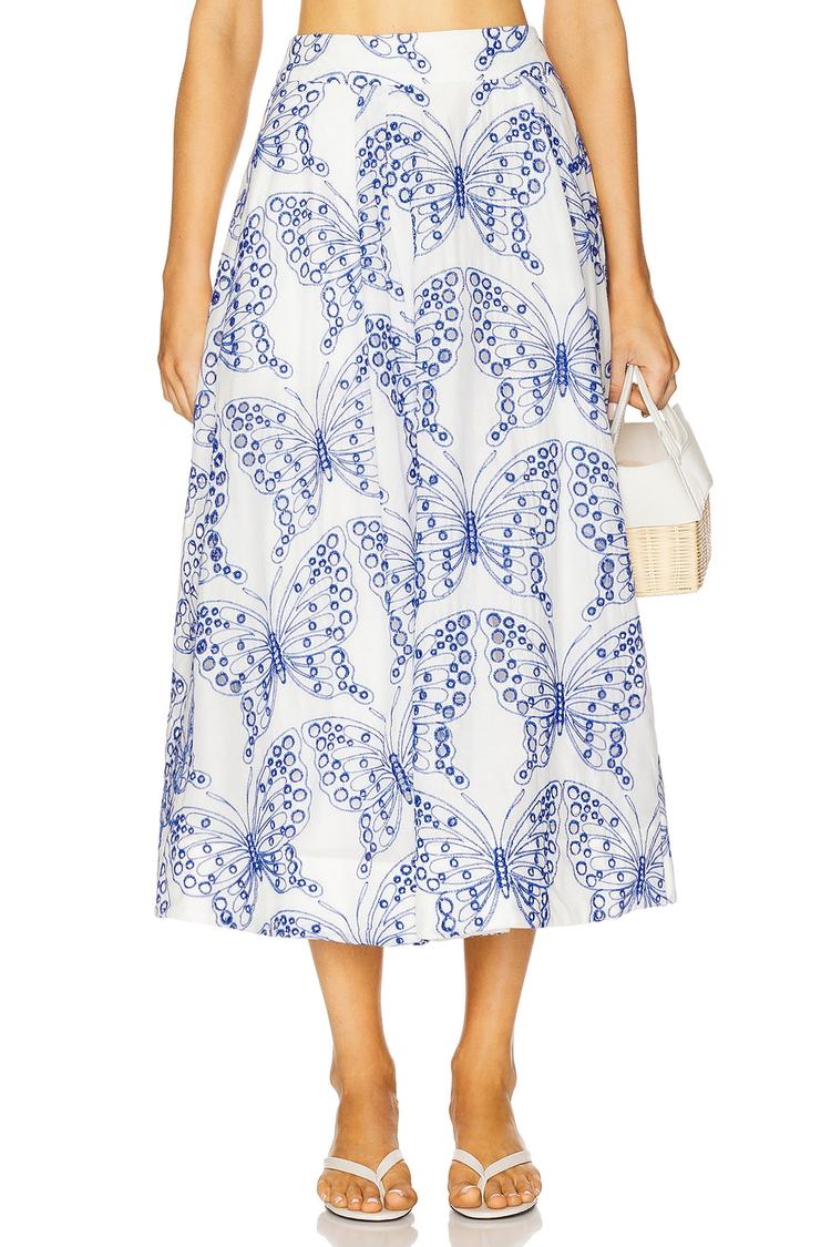Elevate your everyday with a touch of romantic charm. Milly’s Butterfly Eyelet Skirt showcases a white canvas brushed with delicate blue eyelet bloom, carved into a flattering A-line that drapes to a confident midi length. Crafted in midweight eyelet cotton with a soft, smooth polyester lining, it features a concealed back zipper for a seamless silhouette and a butterfly-inspired thread detail that adds refined texture. Versatile for brunch, coastal getaways, or relaxed evenings, this fully lined piece pairs beautifully with a crisp top, delicate sandals, or a lightweight knit for year‑round polish.