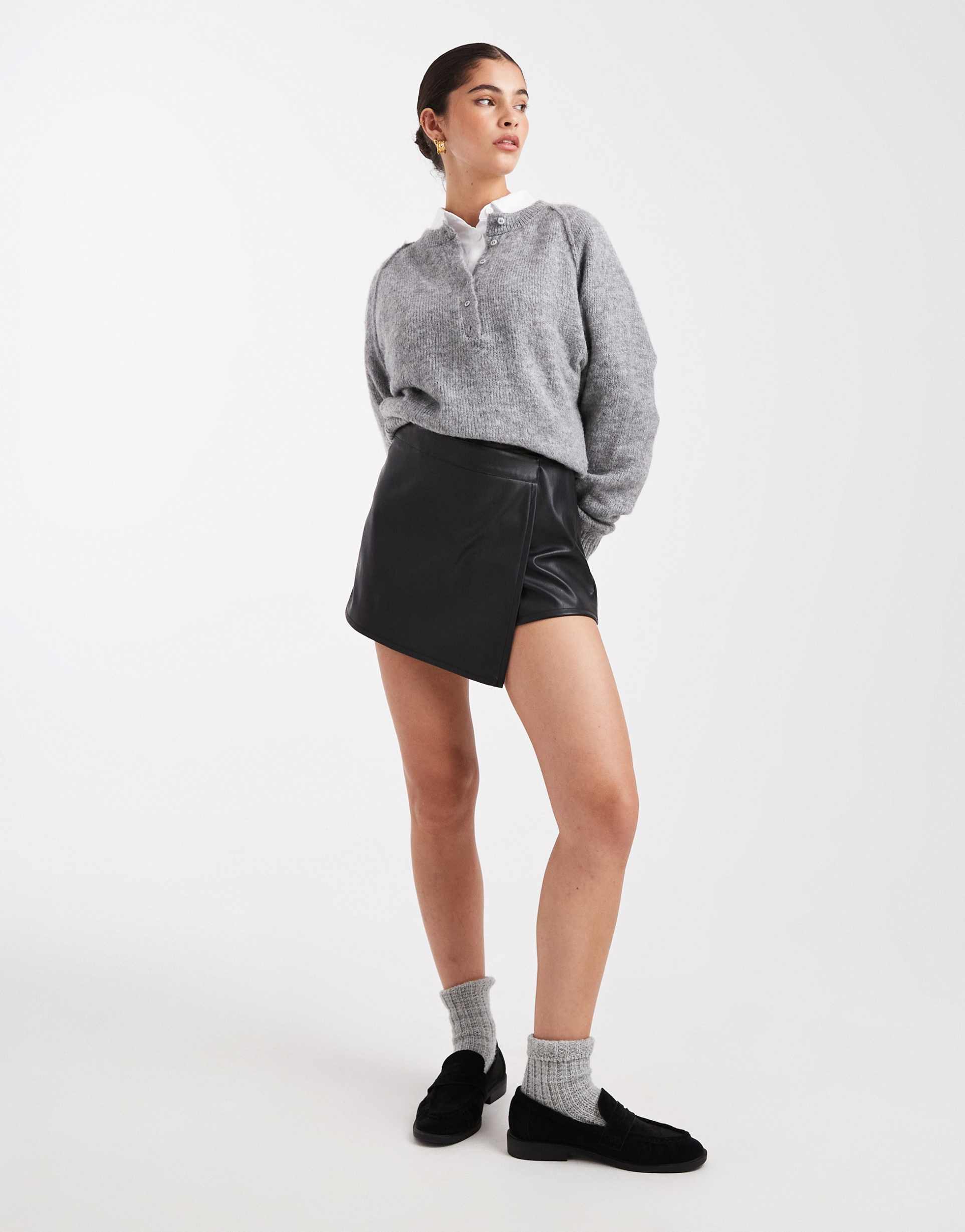 black faux leather skort for casual outings