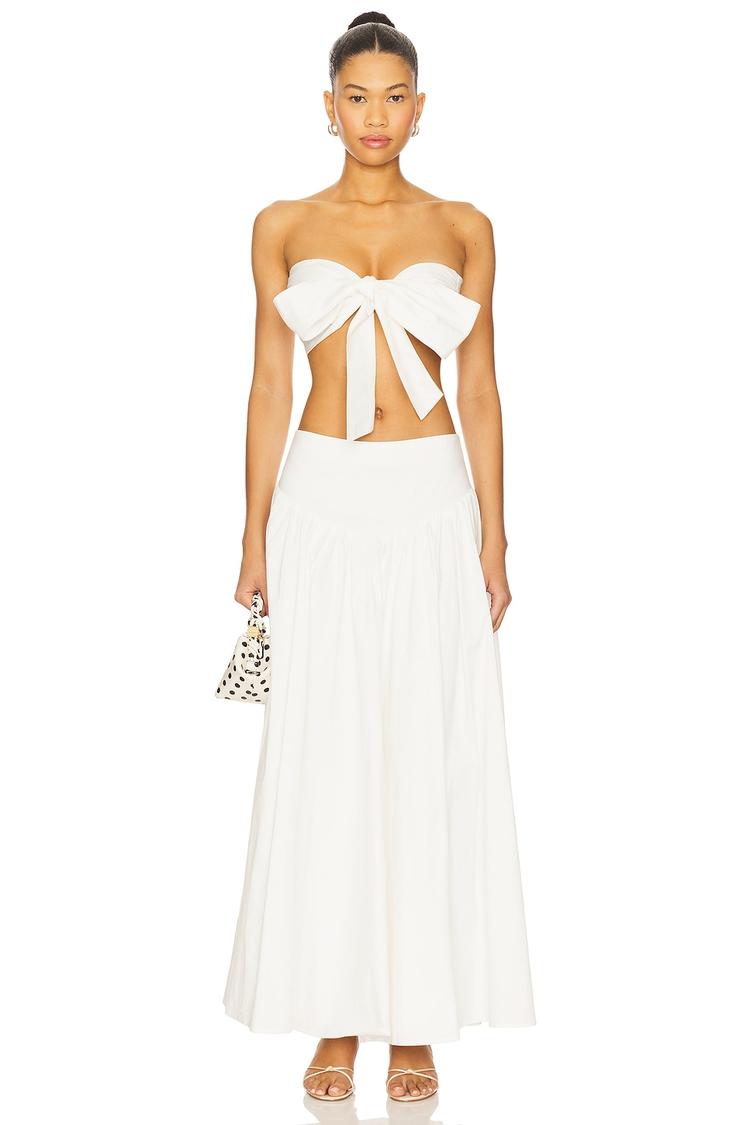 Embrace effortless elegance with this flowing white tiered midi skirt, crafted from a lightweight blend of polyester and viscose poplin fabric. The skirt features a flattering mid-rise waist with a clean flat-front waistband and a discreet hidden back zipper for a smooth silhouette. Its fully lined, breathable texture and tiered hemline add graceful movement and subtle volume, perfect for warm weather. Ideal for casual outings, beach vacations, or brunch dates, this versatile skirt brings a romantic and chic touch to your summer wardrobe. Pair it with the matching front tie bandeau top for a coordinated, trendy look that radiates bohemian charm.