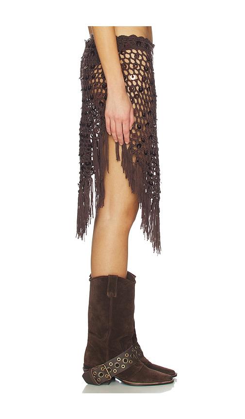 MORE TO COME LORELAI CROCHET SKIRT IN BROWN.